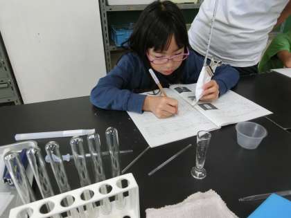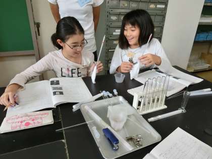 「あっ、温かくなったよ!」子どもたちの嬉しそうな声が理科室に響きました。みんな楽しみながら実験に臨むことができました。