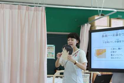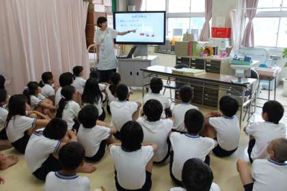 発育測定の前に保健室の先生からの保健指導を受講しました。