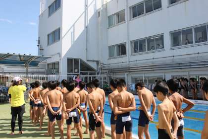 5、6年生が恒例の水泳記録会を行いました。