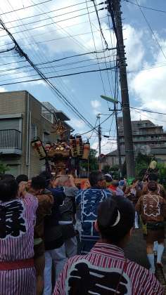 真夏を思わせるような陽気の中、お神輿が町内を進みます。