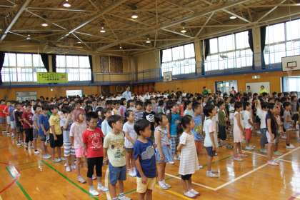 若林小、一週間の始まりを告げる全校朝会がありました。