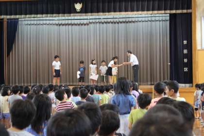 最後に夏季水泳にたくさん参加した子たちの表彰がありました。