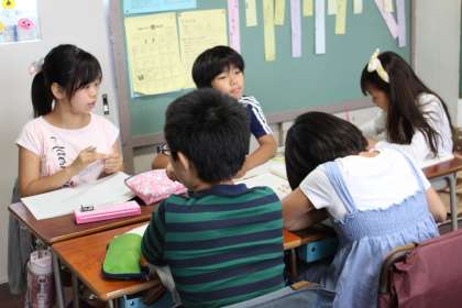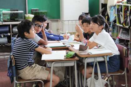 5年生は国語の学習で、メディアについて話し合い活動をしています。