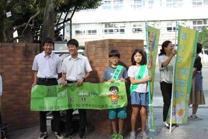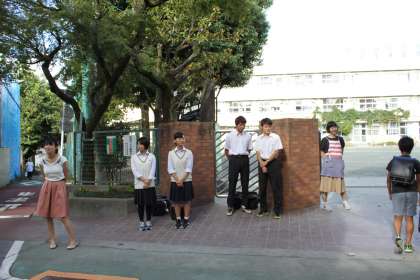 【学び舎合同】あいさつ運動 ようこそ先輩!