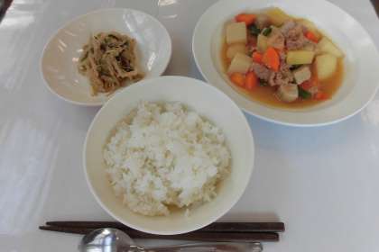 【献立】ごはん・肉じゃがうま煮・ごま酢かけ・牛乳