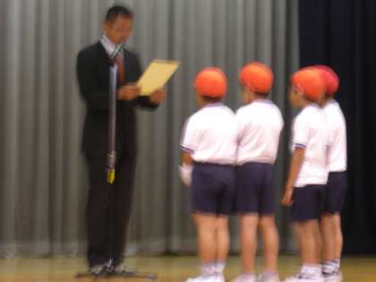 終了後、課外のスポーツの大会の表彰がありました。野球の子供たちは、優勝、サッカー(2年生)の子供たちは、準優勝とのことでした。