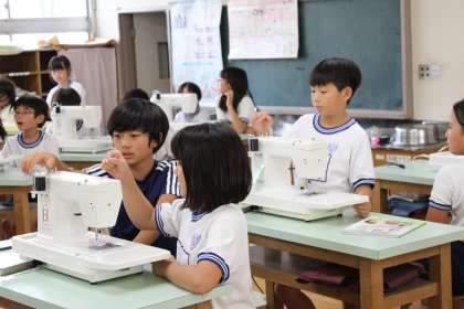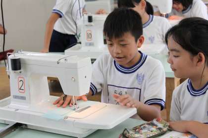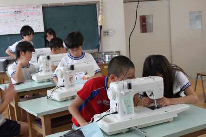 5年生は家庭科の時間にミシンを使った学習をしました。