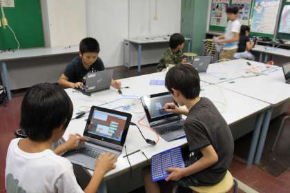 球技クラブは野球を、パソコンクラブはプログラミングを楽しんでいます。