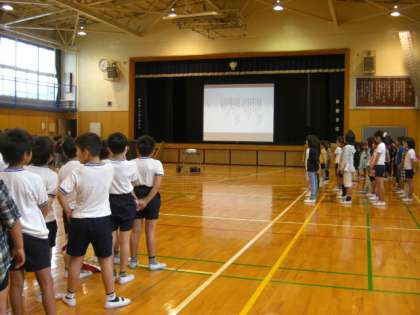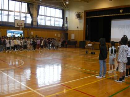 今日は、運動会の歌を全校で歌いました。若林小学校の子供たちの歌声は、力強いです。高学年の子供たちもしっかり口を開けて歌うことができていました。運動会の開会式で歌います。