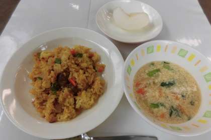 【献立】ツナピラフ・チーズのふわふわスープ・梨・牛乳