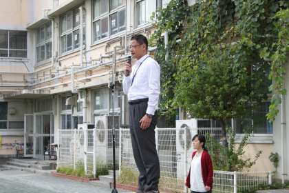 出張に出ている校長先生に代わって副校長先生が講話をしてくれました。