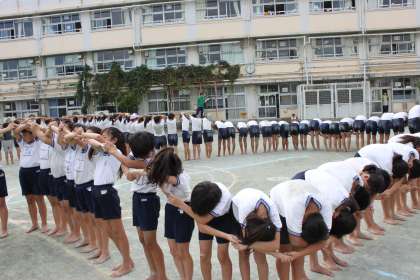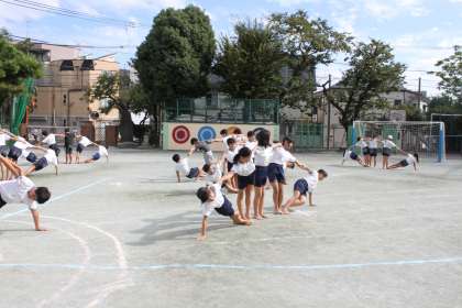 高学年の子達が組体操の練習に取り組んでいます。