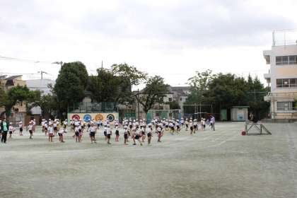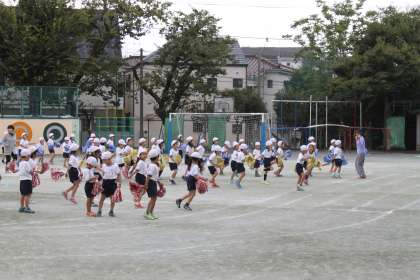 1年生が校庭で運動会の練習をしました。