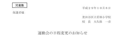 10月7日(土)に予定しておりました運動会ですが、雨の可能性が高く、雨量も多いことが予想されるため、翌10月8日(日)に延期いたします。