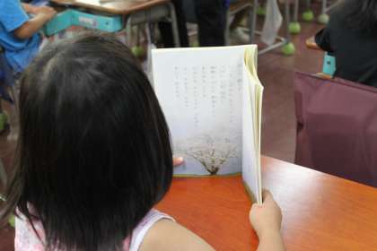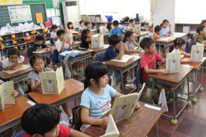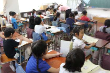 1年生は教科日本語の時間に、宮沢賢治の雨ニモ負ケズを音読しました。