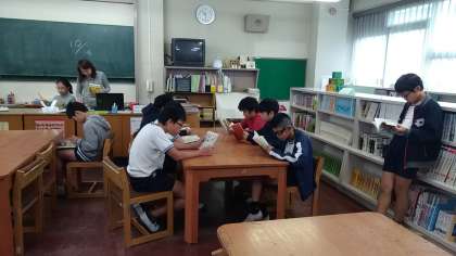 雨の日の休み時間には、多くの子達が図書室に来ています。
