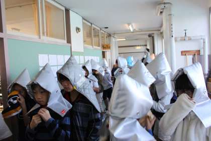 鐘の音と主事さんたちの伝令で避難を開始します。