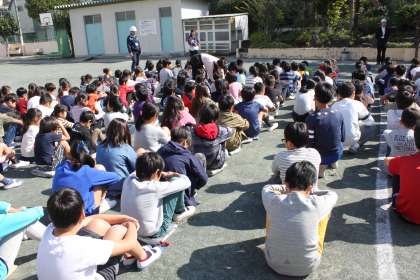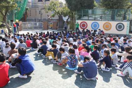 全員が避難を終わりましたが、校庭は静寂に包まれています。