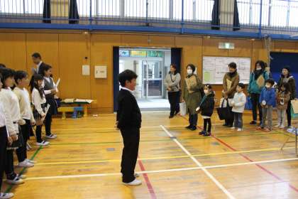 案内役を務める5年生を代表して、児童会副会長があいさつをしました。