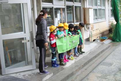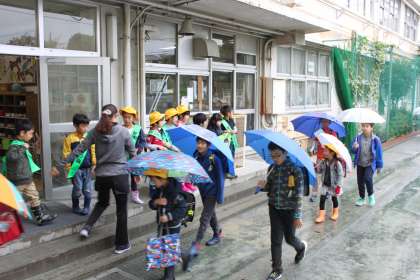残念ながら今日も雨模様でしたが、元気なあいさつが若小の子達の心を暖めてくれました。
