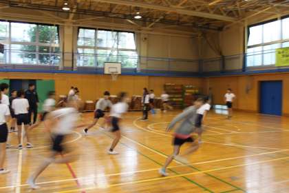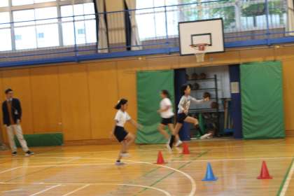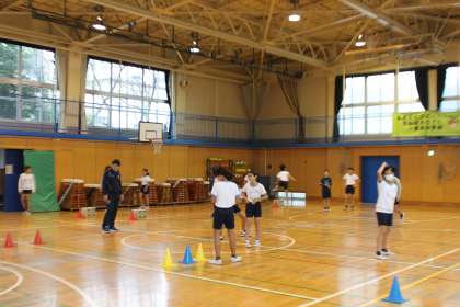 体育館のため、リレーの選手とハードル走の子達だけの練習でしたが、熱のこもった練習が展開されていました。