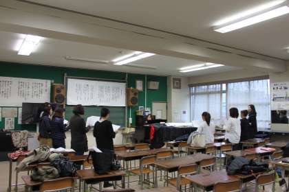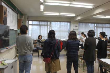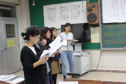 PTAコーラスの皆さんが放課後の音楽室で練習をしています。