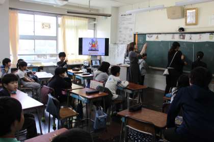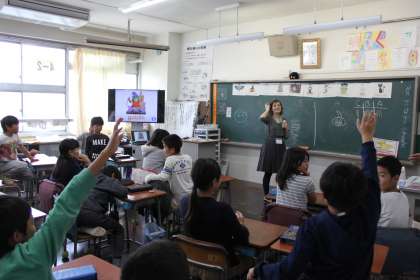 4年生はALTの先生と一緒に外国語によるコミュニケーションを楽しみました。