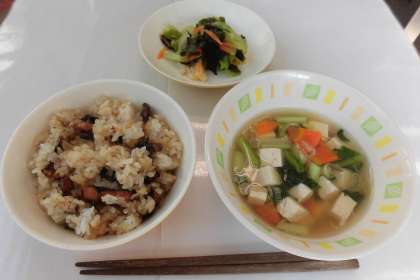 【献立】さんまごはん・キャベツとわかめのひたし・すまし汁・牛乳