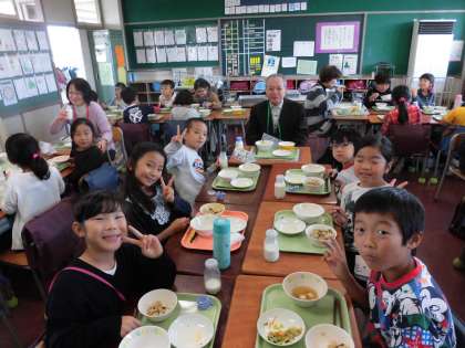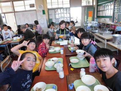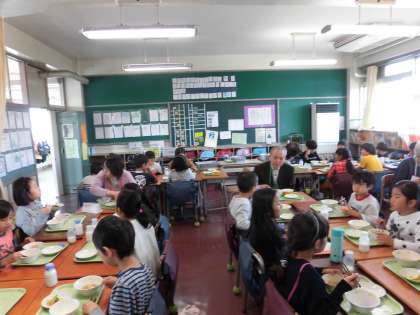 楽しい遊びの時間のあと、給食にも皆様をお招きしました。