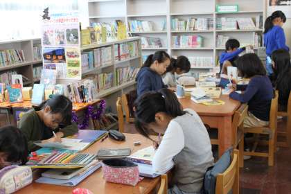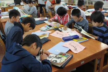 休み時間もそうですが、各学年で図書の時間をとってじっくり本を読む時間を確保しています。
