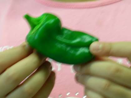 生活科でいろいろな種をまいて育てていた2年2組の畑からピーマンが、取れました。八百屋で売っているぐらい立派なピーマンに子ども達は、大喜びです。明日の給食に入れてもらえるよう、栄養士さんにお願いに行きました。
