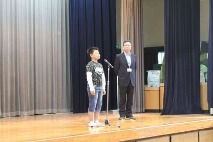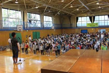 朝会の中で、来週からオーストリアに親善使節として出かける代表児童のスピーチがありました。