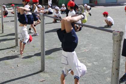 1年生は体育の時間に鉄棒の学習をしました。