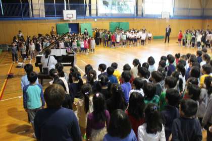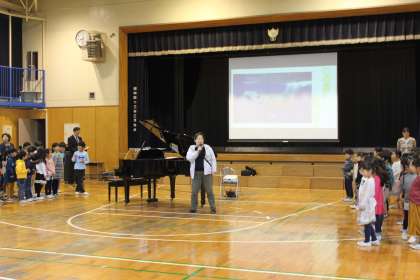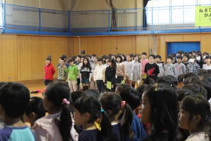今朝は音楽朝会があり、「この星にうまれて」を全校合唱しました。