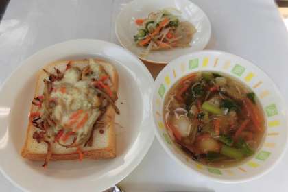 【献立】和風トースト・こんにゃくサラダ・春雨スープ・牛乳