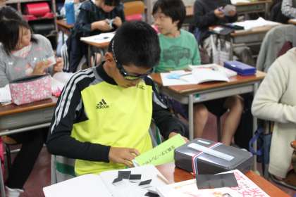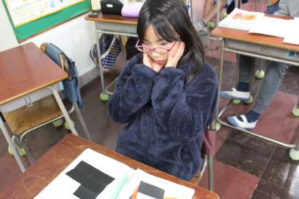 分数を更に分けるのに苦戦しましたが、細かく分けた色紙を組み合わせて、答えを見つけることができました。