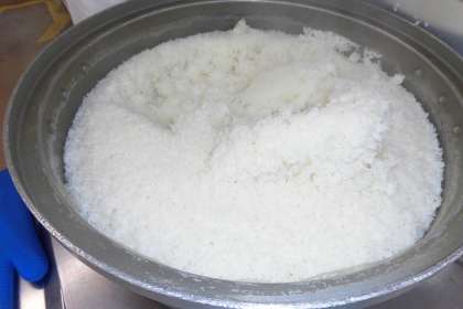 ご家庭ではすでに新米を味わっていらっしゃることと思いますが、若林小の給食では、ようやく今日から新米が登場しました。残念ながらかみしめたときの甘さはお伝えできませんが、炊き上がりのつやつやした様子をご覧ください。