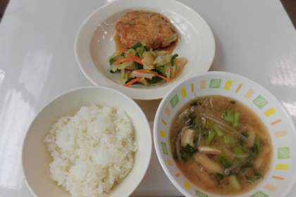 【献立】ごはん・豆腐入りさくさくつくね・おひたし・みそ汁・牛乳
