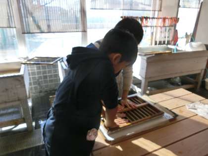 子どもたちが漉いた卒業証書は、若小の校章が浮き出てくるデザインになっています。