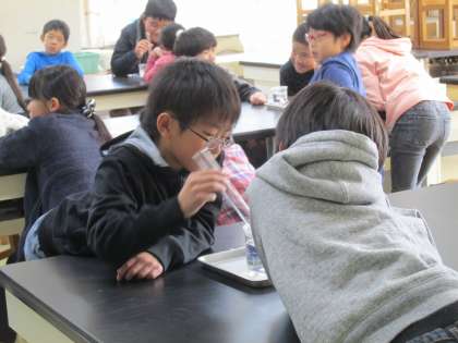 ふたの代わりにしているせっけん液が膨らむ様子から、空気のかさが大きくなっていることが確認できました。