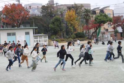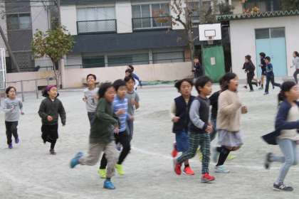 子どもたちにとって持久走はすっかり生活の一部です。