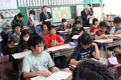 今日の5時間目に、6年生で校内研究授業を行いました。