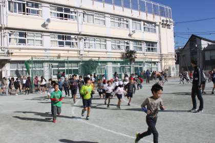 今週は持久走スペシャルウィークということで、全校児童が中休みに校庭で持久走を行います。