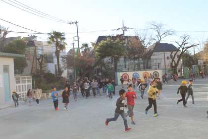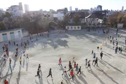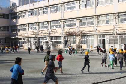 今朝も自由参加の持久走に、たくさんの子達が参加していました。