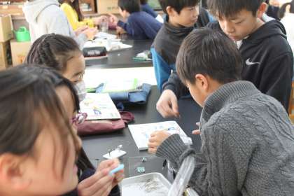 5年生は理科の学習のでコイルリングを回す実験をしました。