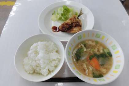 【献立】ごはん・あじフライ・キャベツの甘酢かけ・みそ汁・牛乳