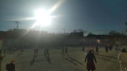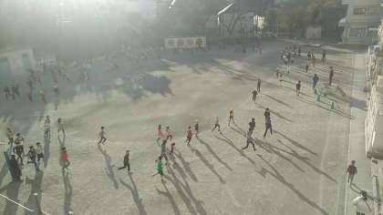 任意の参加、しかも早めに登校した子しか参加できない活動ですが、ご覧の通りたくさんの子達が持久走に取り組んでいます。
