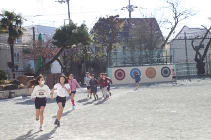 各学年とも、体育の学習の前に持久走の時間をとっています。