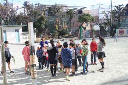 1班から12班までが、校庭、体育館、屋上、教室に分かれ、6年生を中心に遊びます。