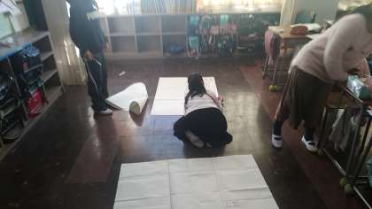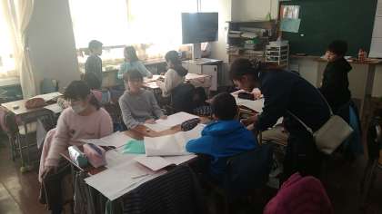 身近なことや、友達のこと、学校のことなどを記事にして、1枚の大きな新聞にまとめます。